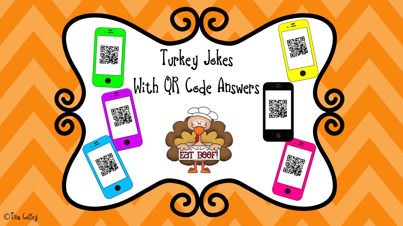 Turkey Jokes with QR Code Answers — Want to add some fun to your computer lab or classroom? This pack includes 16 jokes in color and black and white. Use a QR code to learn the answers! These can also be used as a way to introduce using a QR code reader such as the i-nigma app or the Scan app. If you use these in you classroom, have students create their own jokes after viewing these examples!